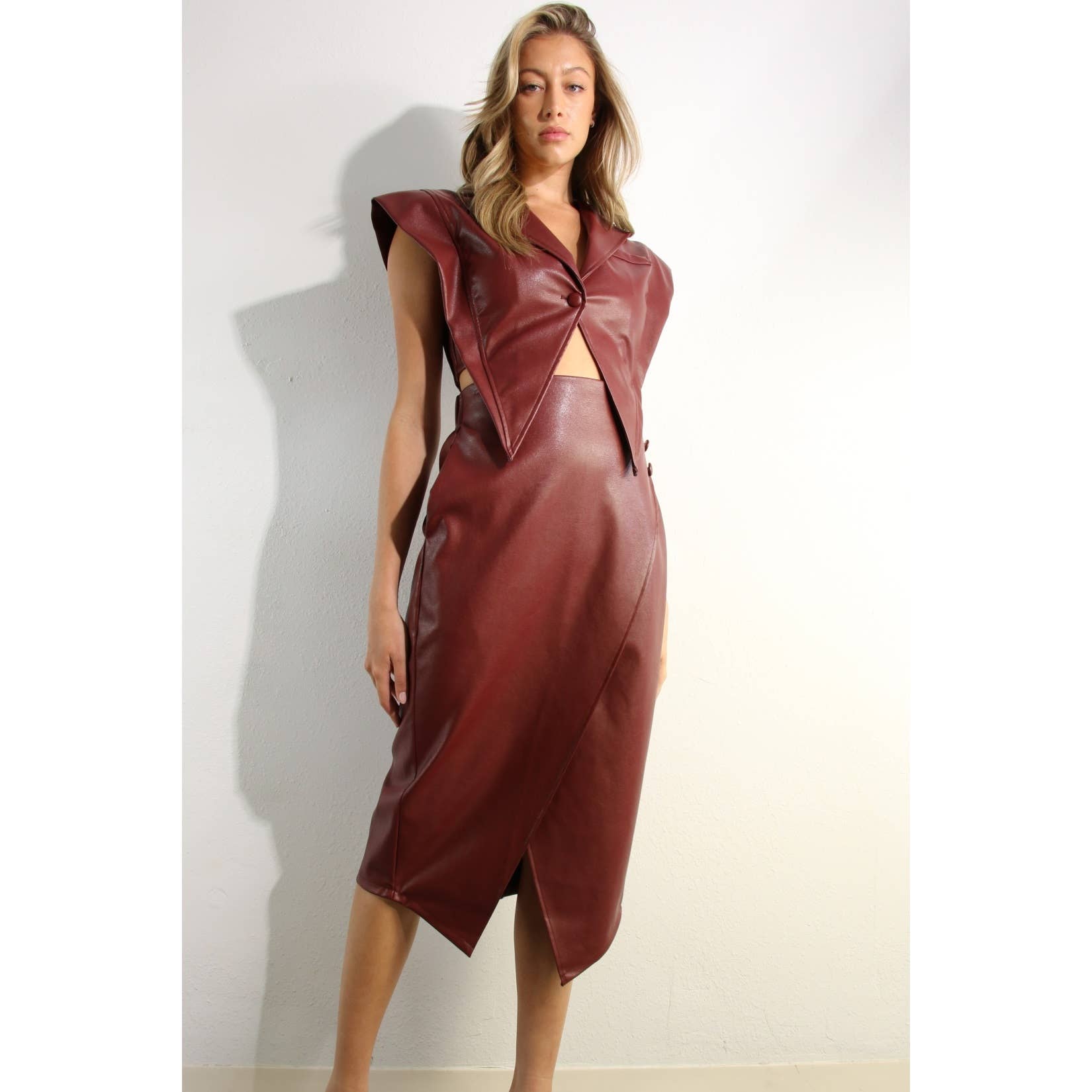 FAUX LEATHER VEST JACKET AND SKIRT SET