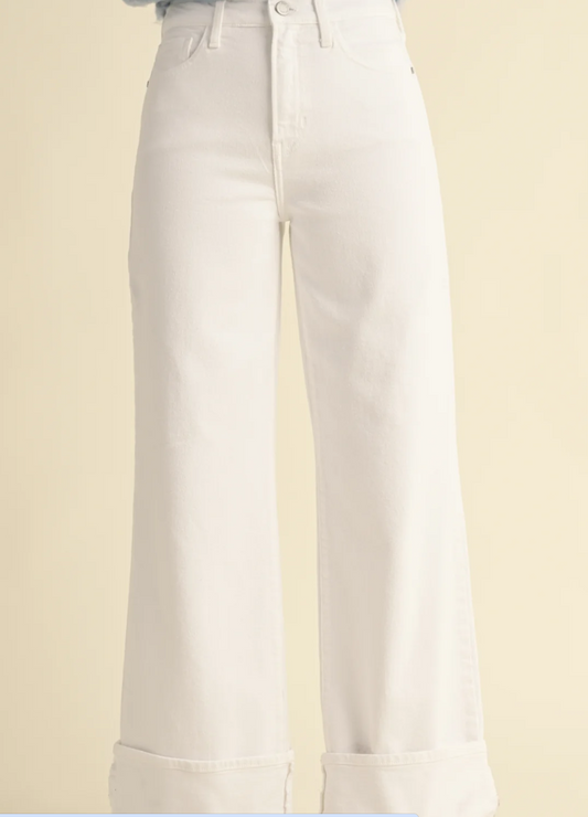 Cuffed Palazzo Optic White Denim
