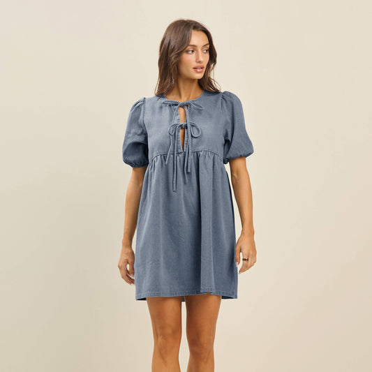 Bow denim mini dress