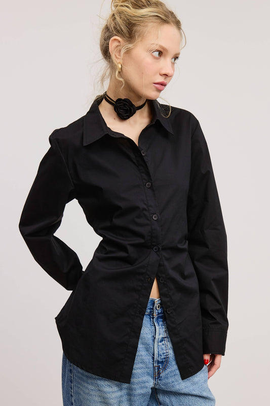 Fitted Collared Shirt Blouse with Back Self-Tie