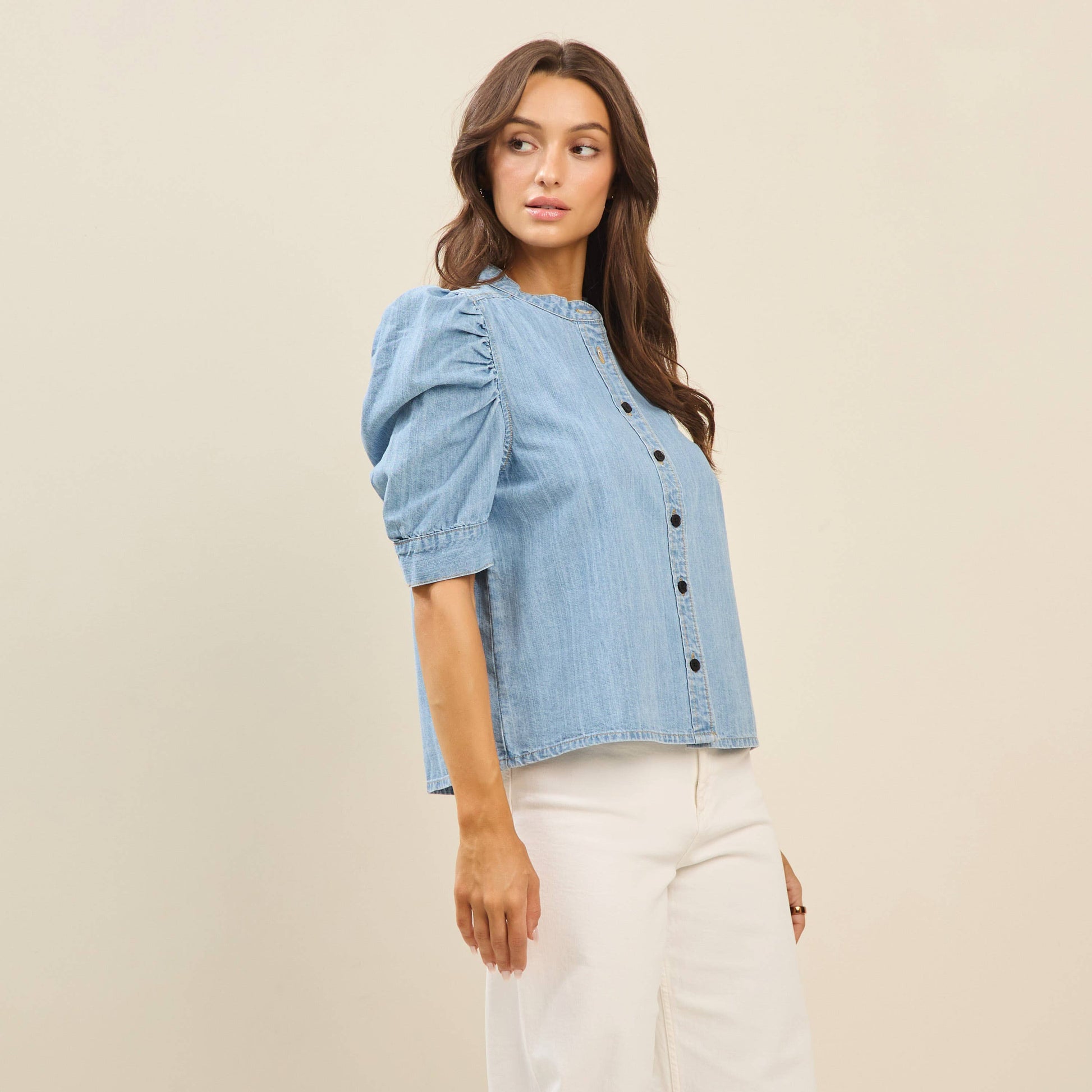 Denim Puff Sleeve Blouse