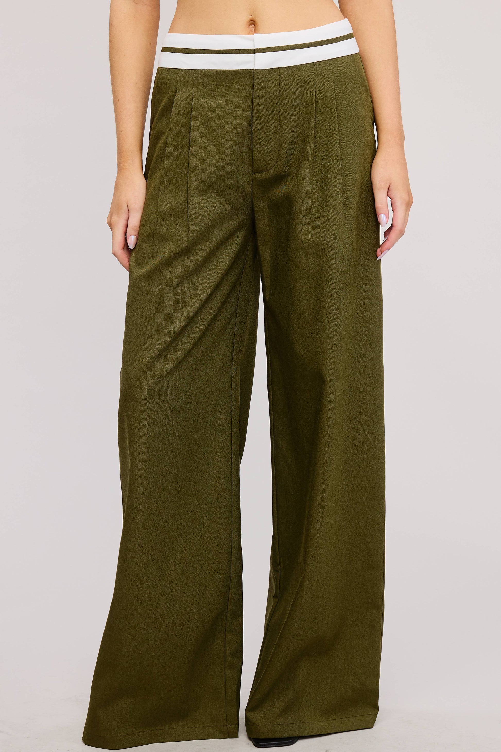 Minimalistic Contrast Waistband Pleated Trouser Pants